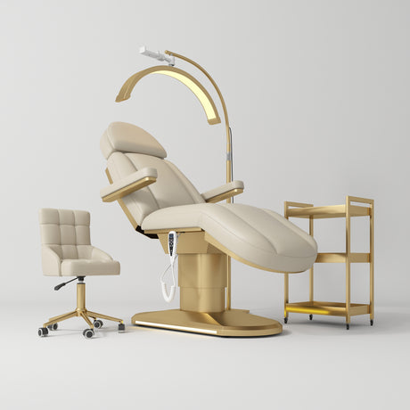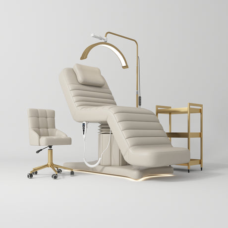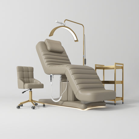 Manufakturo Luxe Light Brown Complete Salon Set - Lash Beauty Bed, Chair, Moonlight & Trolley