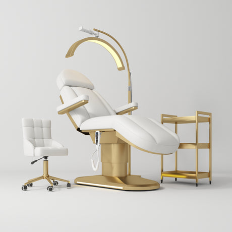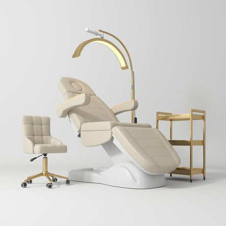 Manufakturo Luxe Creamy Complete Salon Set - Lash Beauty Bed, Chair, Moonlight & Trolley