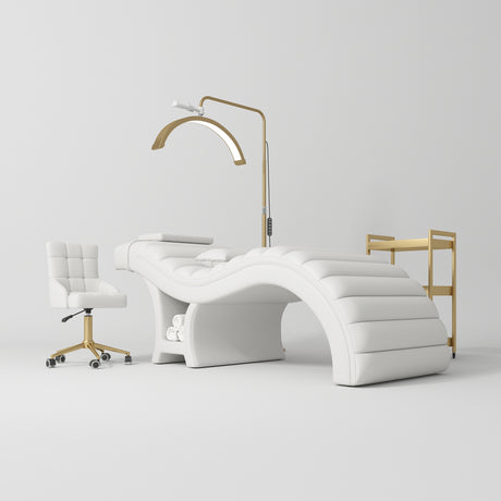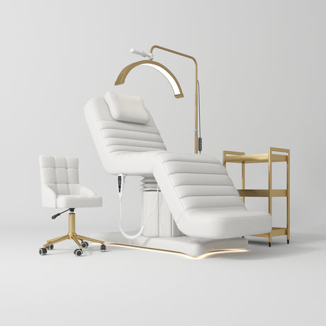 Manufakturo Luxe White Complete Salon Set - Lash Beauty Bed, Chair, Moonlight & Trolley