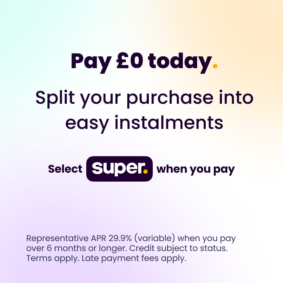 Pay in 3 interest-free payments, or pay £0 today and spread the cost for up to 24 months. Representative 29.9% APR.