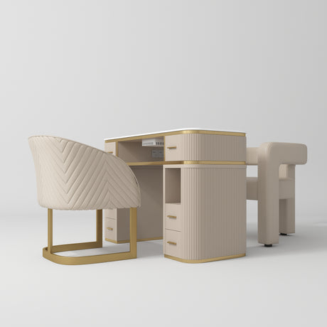 Manufakturo Manicure Table Glam Station with Build-in Dust Absorber Creamy