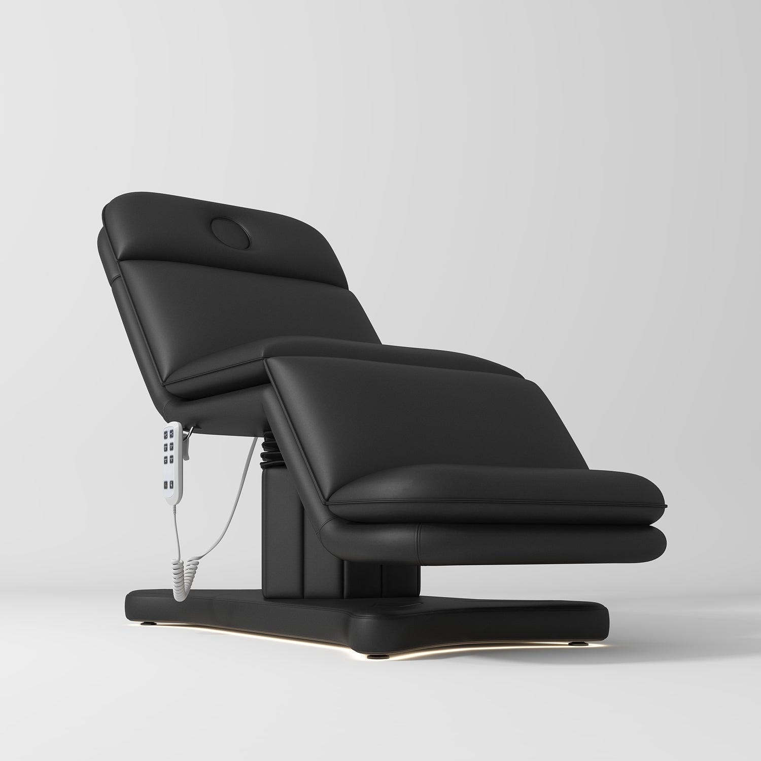 Crafted with a solid wood frame and complemented by sponge cushioning, this bed is not only robust but also comfortable. The Anti-Aceton leather covering ensures the bed withstands rigorous use while maintaining its pristine condition. The addition of a heating function elevates client relaxation, creating a warm and inviting environment. LED ambient light strips around the base add a touch of elegance, making this bed a standout piece in any salon. Moreover, the one-key recovery function simplifies adjustments, swiftly returning the bed to its default position, thus facilitating a smooth transition between clients.