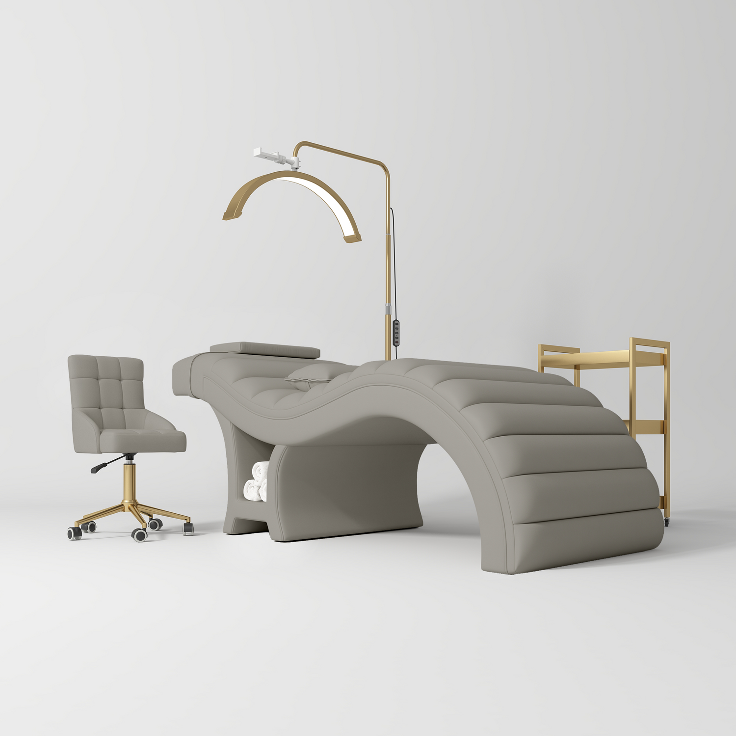 Manufakturo Luxe Pearl Greige Complete Salon Set - Lash Beauty Bed, Chair, Moonlight & Trolley