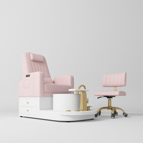 Manufakturo Noémie Luxury Electric Pedicure Chair with Matching Stool – Massage Backrest, Gold Tap, Light Pink