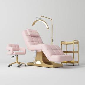 Manufakturo Saphir version A Light Pink – 4-Piece Beauty Studio Set: Luxury Bed, Chair, Lamp & Trolley