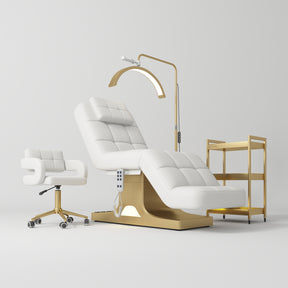 Manufakturo Saphir version A White – 4-Piece Beauty Studio Set: Luxury Bed, Chair, Lamp & Trolley