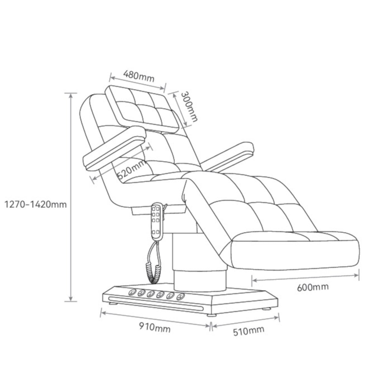 • Three electro-hydraulic motors for smooth height, leg, and backrest adjustments.