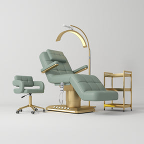 Manufakturo Saphir version B Olive – 4-Piece Beauty Studio Set: Luxury Bed, Chair, Lamp & Trolley