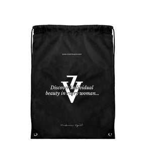 Plecak typu worek wykonany z szybkoschnącej tkaniny poliestrowej. Z przodu duże logo Victoria Vynn.