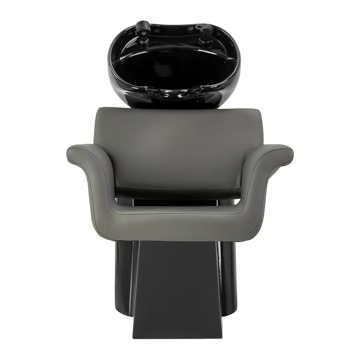 The chair combines a modern, minimalist form with a high level of comfort. The characteristically outward-curving armrests lend it an elegant character, whilst supporting a comfortable and natural position for the client. The backrest, with its optimal angle of inclination, promotes correct posture and relaxation during treatments. The use of durable, moisture-resistant materials makes it easy to maintain and ensures the furniture retains its aesthetic appeal for a long time. A complete set of fittings – tap, shower head and dedicated hoses – ensures the unit is fully ready for use. The universal design means the model fits perfectly into both modern and classic interiors, emphasising the professional character of the salon.