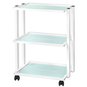Are you tired of cluttered workspaces and the constant juggling of your cosmetic devices? Discover the ultimate solution with the Giovanni Cosmetic Trolley Type 1041. Designed for beauty professionals who demand both style and functionality, this sleek and sturdy table brilliantly accommodates your professional needs. Crafted with a robust metal structure and adorned with three elegant glass shelves, the Giovanni 1041 not only exudes sophistication but also ensures lasting durability. The trolley's shelves, each etched with the Giovanni logo, provide ample space for all your essential tools and devices, making it the perfect addition to any salon or personal beauty station.