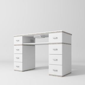 Beyond its visual appeal, this manicure table is a powerhouse of practicality. With 8 spacious drawers and an open shelf, it allows for meticulous organisation of all your nail tools, from lamps to polishing equipment. Crafted from eco-friendly engineered wood, it combines durability with environmental consciousness, ensuring a product that stands the test of time. The table's high-quality drawer slides and soft-close hinges enhance user experience by allowing smooth and quiet operation. Additionally, the comfortable wrist rest and ergonomically designed curved handles offer both comfort and functionality, reducing arm fatigue during long sessions and ensuring easy access to your tools.