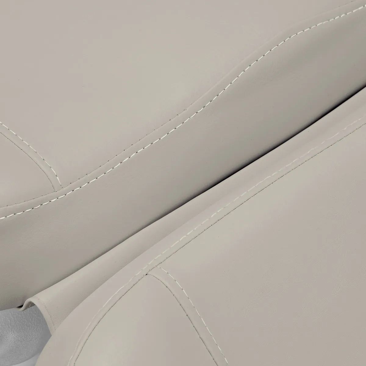 The chair is filled with contoured foam and covered with pleasant-to-touch synthetic leather in shades of beige. The material used makes the equipment easy to clean, as well as resistant to moisture and selected disinfectants. A solid base made of durable material in shades of white ensures stability during treatments. Properly profiled hems give the chair a stylish look and make the seat ergonomic. Minimalist, simple design and classic colors allow it to fit into any interior.
