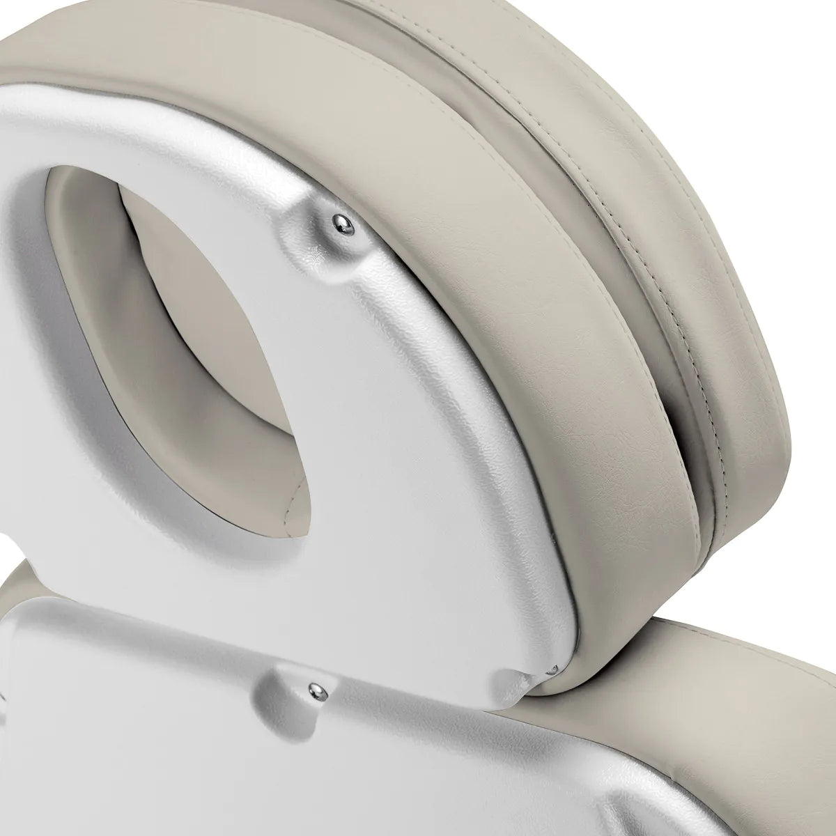 The extendable headrest helps customize the equipment for users of different heights, providing stable head support during treatments. It is also possible to adjust the extension of the footrest, which is especially useful during treatments performed on taller people, providing them with better support. The armrests are movable within 180º, which facilitates taking a seat in the chair and provides comfortable access for the person performing the procedure. They can be easily and quickly removed if necessary.