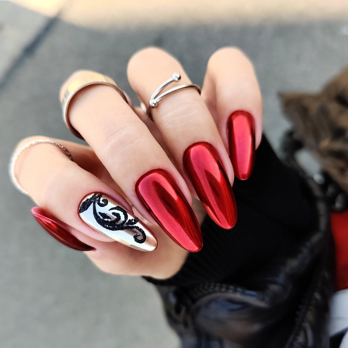 The Slowianka 17 Red Metallic Powder Dust offers a captivating way to elevate hybrid manicures with its rich, blood-red hue. Perfect for special occasions, this metallic powder adds a striking finish that shines both in gloss and matte. Whether it's the holidays, Valentine's Day, or a glamorous ball, this powder delivers a salon-quality mirror-like sheen. For optimum effect, apply it over red polish, or experiment with black for a bold, dramatic contrast.