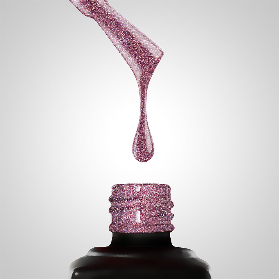 • Shade: Metallic pink with holographic particles reflecting in purple and pink hues.